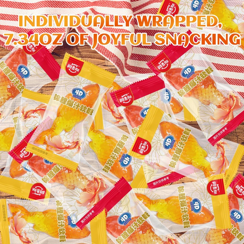 - Beautiful Implication: Koi fish symbolizes luck, and beautiful wishes are conveyed while eating the Amos 4D Gummy Lucky Koi Candy.