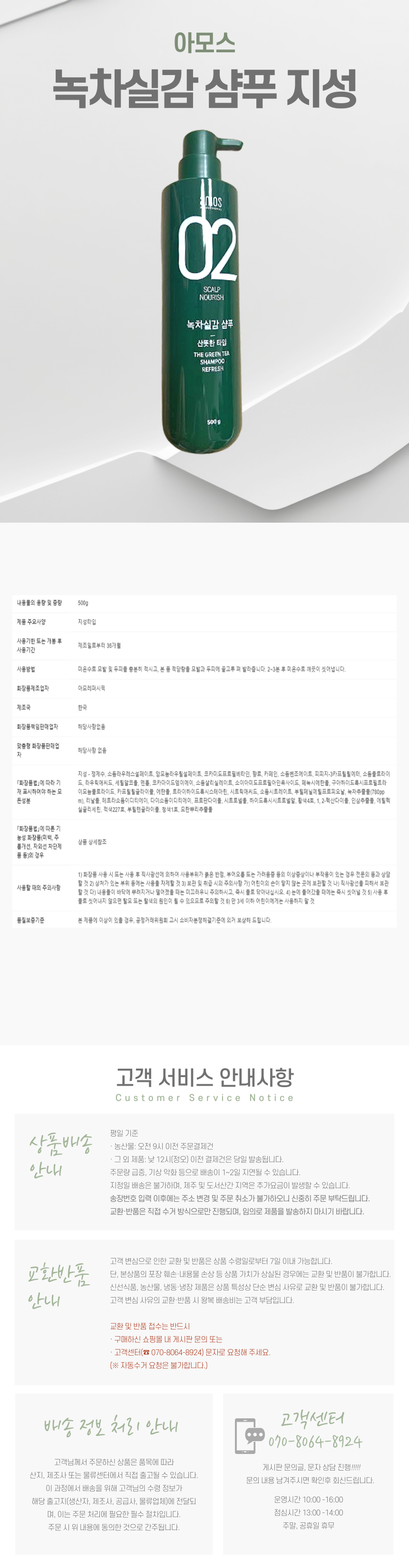 [아모스] 아모스 녹차실감 샴푸 지성 500g 1개 두피 보습 케어 산뜻한 타입