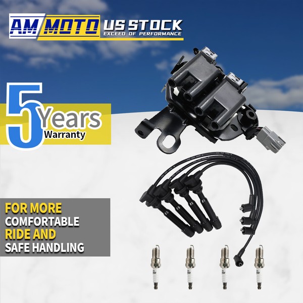 AMOTO Ignition Coil & 4x Spark Plug & 4X Wire For 2005-2007 Kia Spectra 2.0L L4 UF419