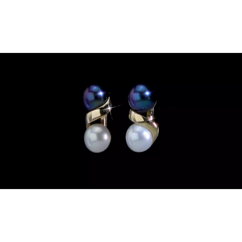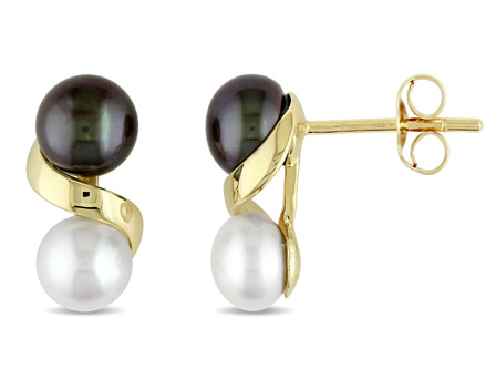 Amour 10k Gold Black and White Cultured Freshwater Pearl Earrings