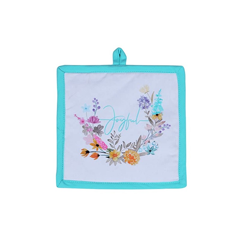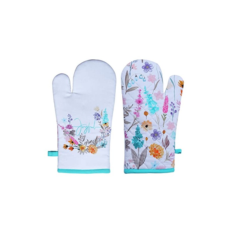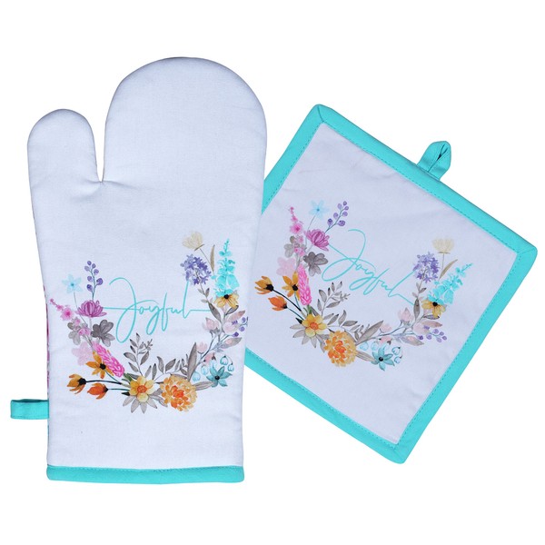 AMOUR INFINI Pot Holders and Oven Mitt Heat Resistant Non Slip Reusable Set of 1 Oven Mitt and 1 Pot Holder Oven Gloves Pot Holder for Cooking (Joyful Floral Design)