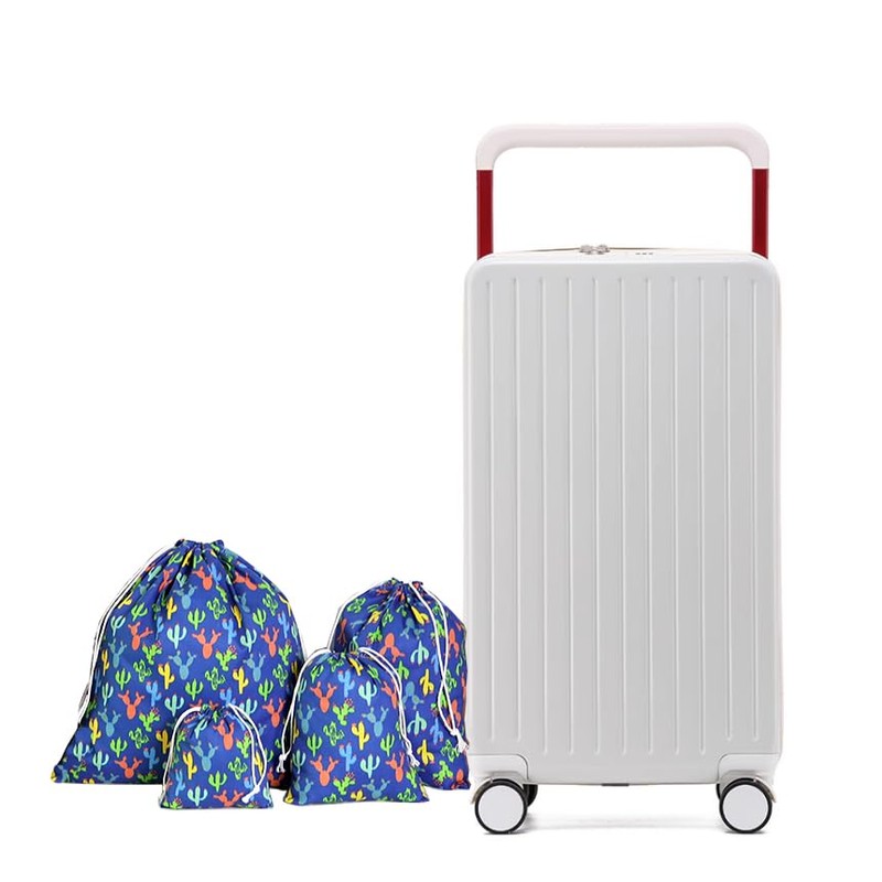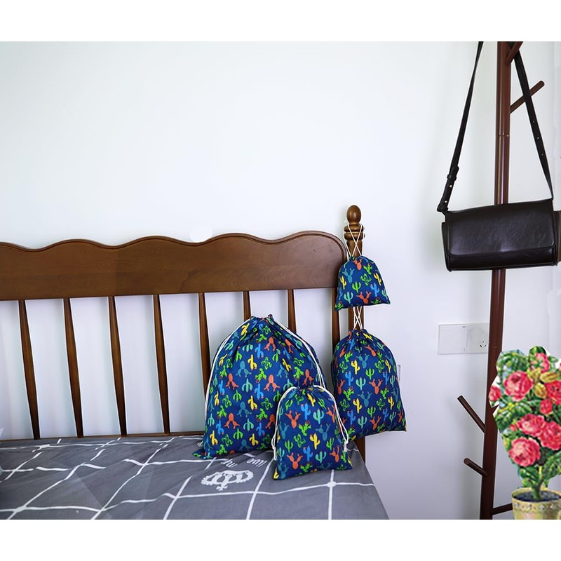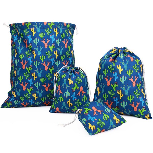 Amoyie 4 pcs Drawstring Storage Bag Set for Baby Stuff, Travel Home Accessories - Blue Cactus