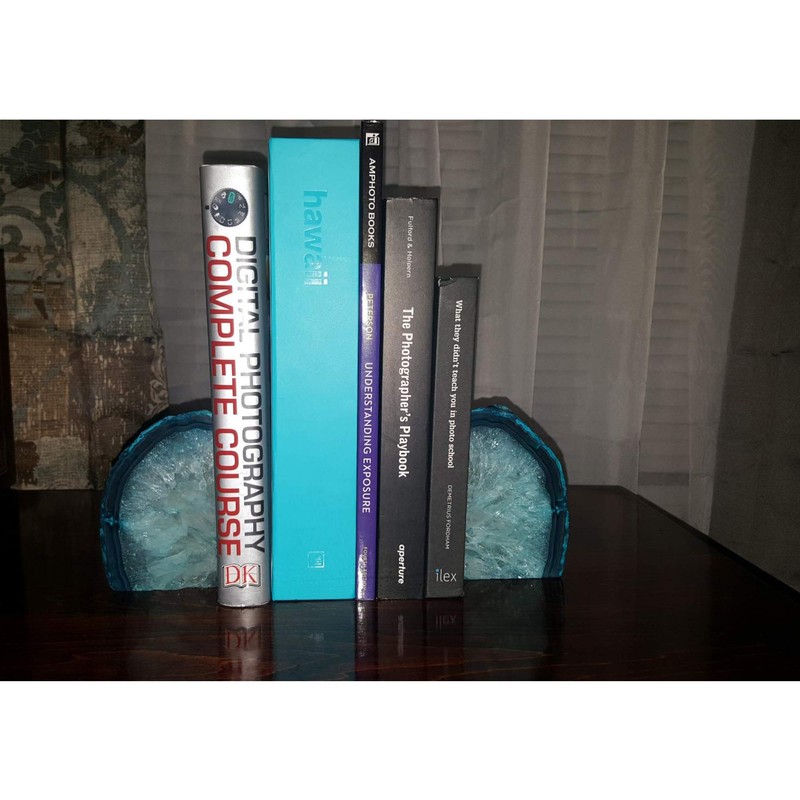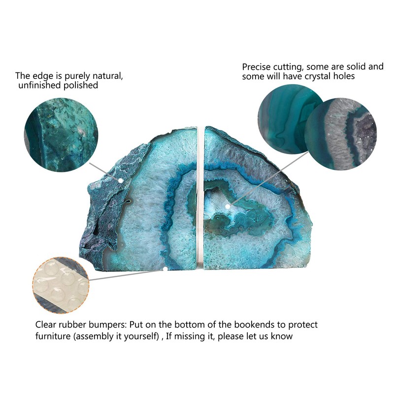 - DYED AGATE Geodes: Decorative bookends from natural agate, these bookends are Dyed Teal to accommodate a variety of decorative themes for books.These are among the most unique bookends available