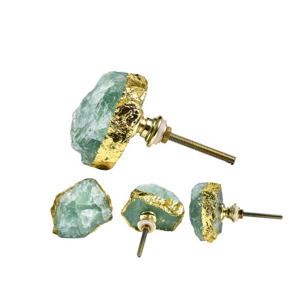AMOYSTONE Natural Crystal Drawer and Pulls Knobs Kitchen Cabinet Knobs 4pcs Green Fuorite with Gold Foil, Irregular Drawer Pulls Door Handles Knobs 1~1.5" (30-40mm) Home Decor