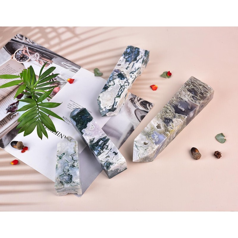 AMOYSTONE Natural Crystal Obelisk Moss Agate Gemstone Tower 1.3-1.7 LBS, Healing Reiki Chakra Meditation Therapy Crystal Mineral Ornament