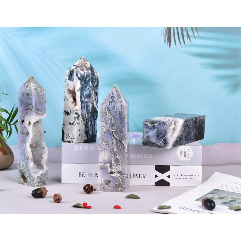 AMOYSTONE Natural Crystal Obelisk Moss Agate Gemstone Tower 1.3-1.7 LBS, Healing Reiki Chakra Meditation Therapy Crystal Mineral Ornament