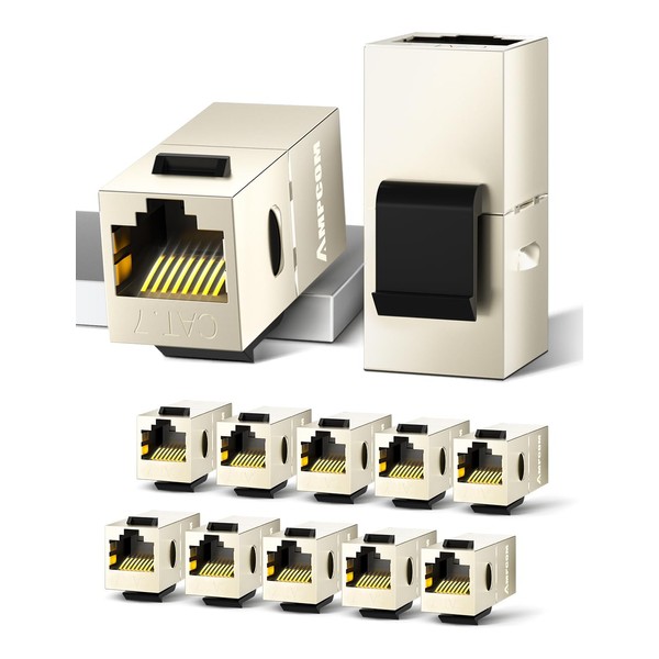 AMPCOM CAT7 Inline Coupler RJ45 STP Keystone Jack, Shielded Female to Female Feedthrough Ethernet Module- 12 Pack