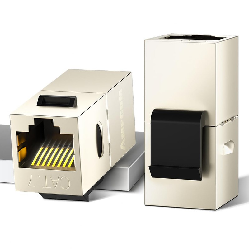 AMPCOM CAT7 Keystone Coupler, 2-Pack Pass Through RJ45 Keystone Jack, Shielded Female to Female Ethernet Feedthrough Inline Coupler