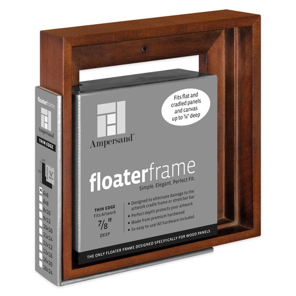 Ampersand Art Supply Floaterframe Readymade Frame for Flat and 7/8" Deep Wood Panel and Canvas Artwork, Paintings, Prints, and More, 6"x6", Walnut Thin