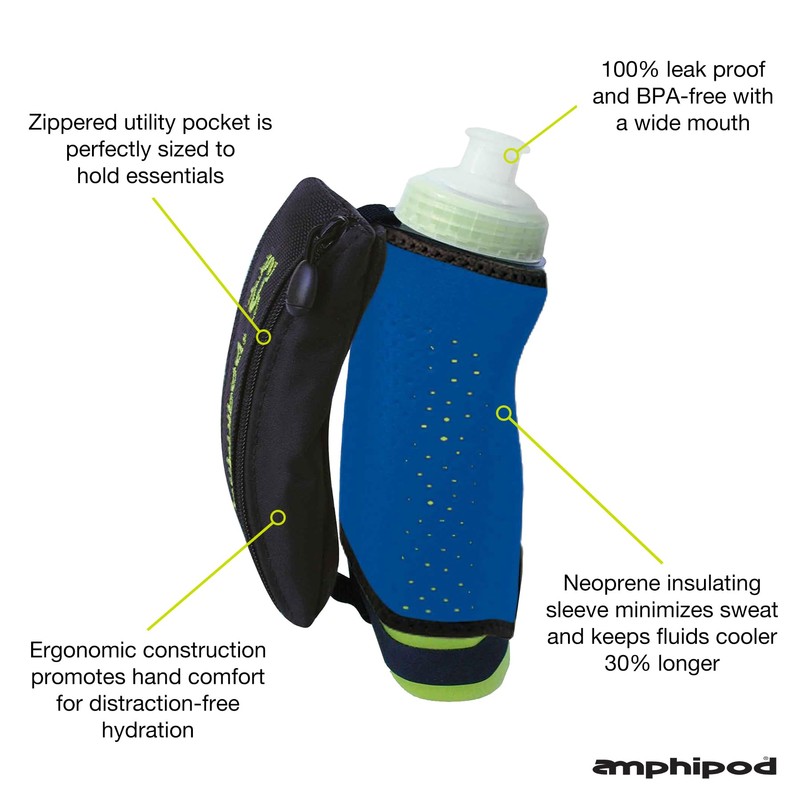 Amphipod Hydraform Handheld Thermal-Lite Water Bottle, BPA-Free, Insulated Sleeve, Storage Pocket for Running & Walking - Azure Blue - 12 oz.