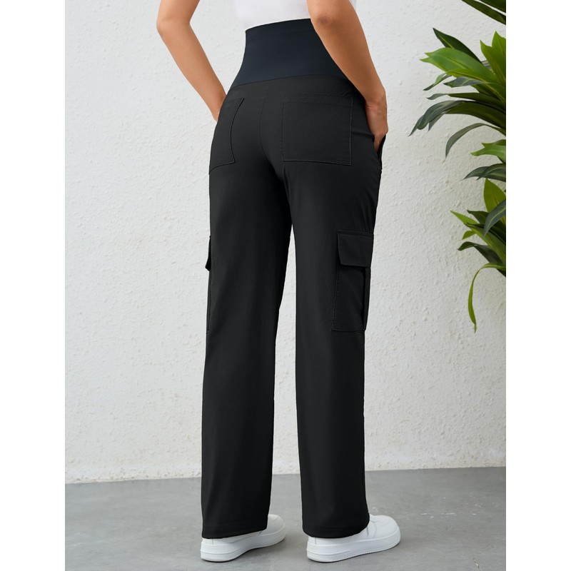 AMPOSH Women's Maternity Cargo Pants with 6 Pockets Quick-Dry Pregnancy Hiking Pants(Black, XL)