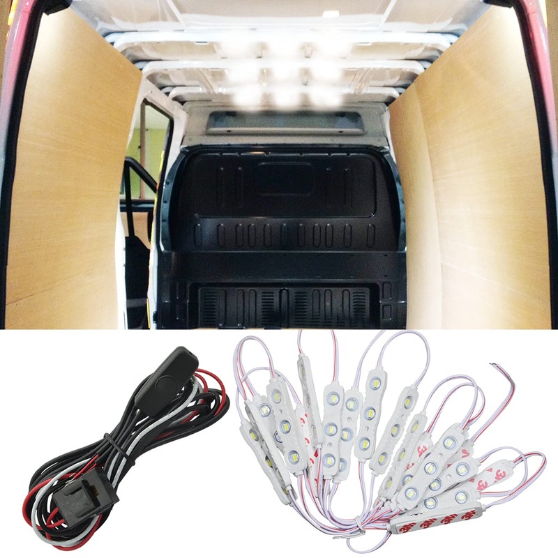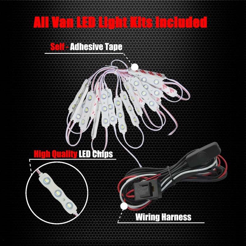 Ampper 12V 60 LEDs Interior Van Light Kits, LED Ceiling Lights with Simplified Harness Switch Fuse for Van RV Boats Caravans Trailers VW LWB and More (20 Modules, White)