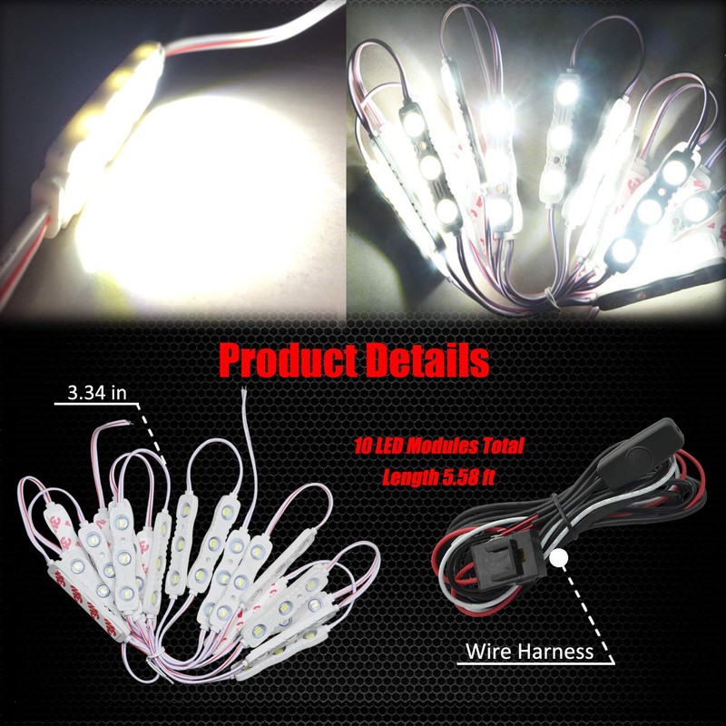 - High Brightness & High Quality: composed of 60 super high brightness LEDs (20 modules) and wiring harness with switch and fuse, light up your RV and van.