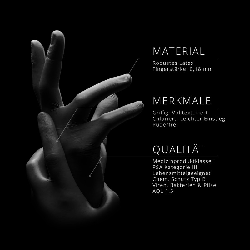 - Confirmed protection: the latex disposable glove meets the standards EN 455 and EN 374. The examination gloves protect against viruses, bacteria and fungi, are approved as a medical device class I and are subject to PPE cat. III.