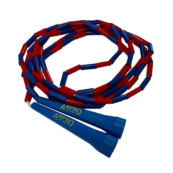 AMPRO Super Pro Ballers 10ft Adjustable Beaded Jump Rope - Red/Blue/Yellow - Skipping Rope/Boxers/Boxer/Fitness/Exercise