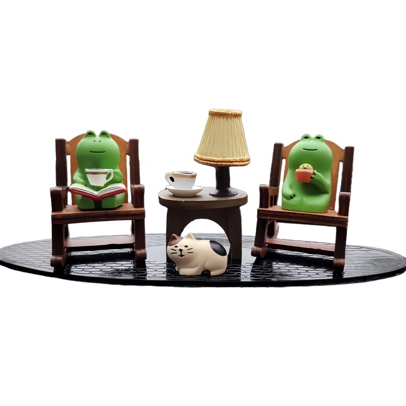 - Miniature Frog Figurines Set: This enchanting set includes 2 chairs, 2 frog sculptures, and 1 adorable cat sculpture, allowing for flexible and personalized arrangements. It also comes with a mini table lamp and non-slip pads, adding functionality and convenience to the set.