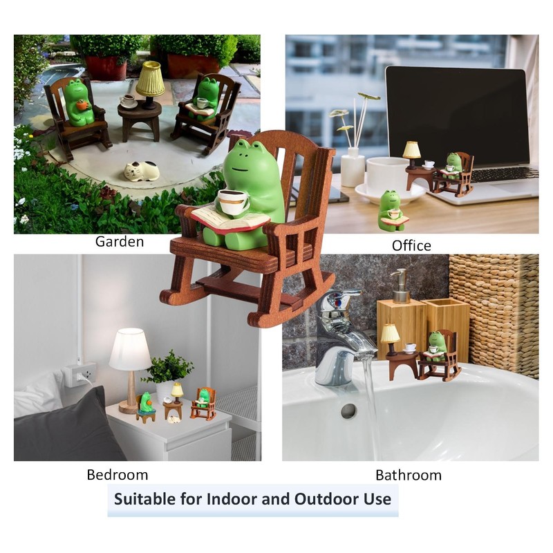 - Durable Material: Crafted from high-quality polyresin (except for the wooden chairs), these miniature frog figurines are designed with attention to detail to ensure the best possible quality. They are built to withstand various weather conditions, retaining their vibrant colors and durability.