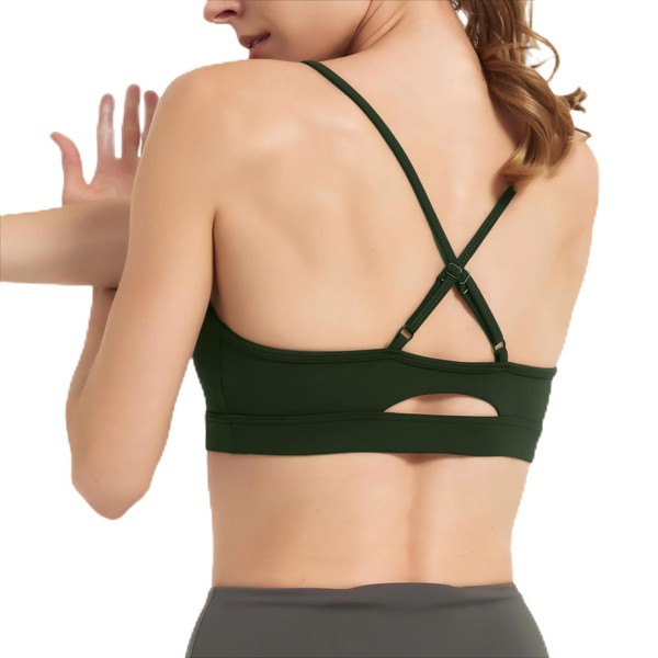 AMRIY Women's Light Support Sports Bra Adjustable Thin Straps Criss Cross Back Open Back Removable Pads Yoga Workout Bra Green,M