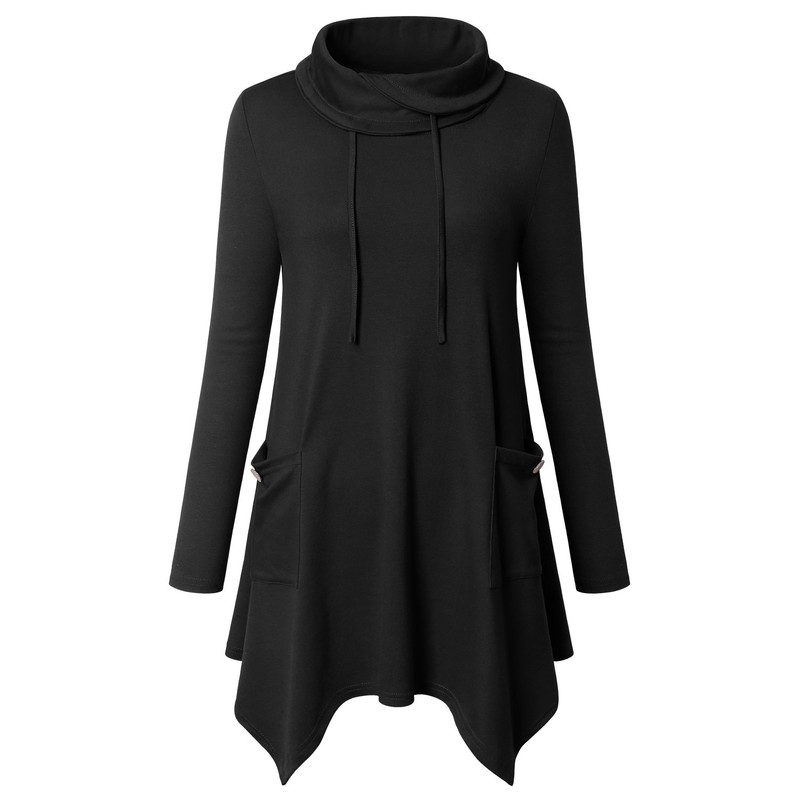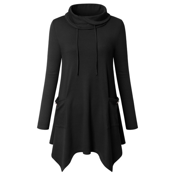 Amrto Women's Long-Sleeved Turtleneck Tunic, Top with Pockets - #1 black Plain, size: l