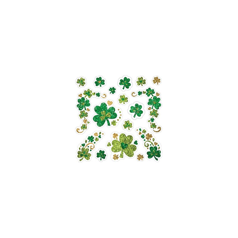 When you're searching for the pot of gold on St. Patrick's Day, you've got to look the part! Shamrock Glitter Body Jewelry features sparkly three-leaf clover designs in shades of gold and green with lots of glitter. Just peel and stick to add the perfect pinch of green to your St. Patrick's Day outfit!