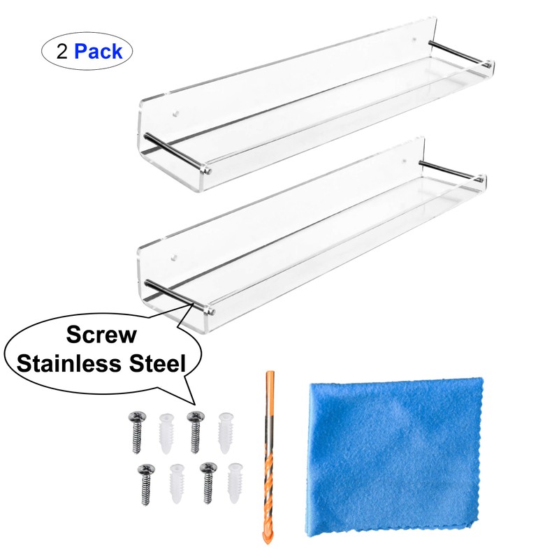 - ITEM INFORMATION: Design: INVISIBLE Acrylic Shelves Material: Long-lasting and high-quality acrylic. Size: 15 x 3.25 (inch). High each row: 2.15 (inch)