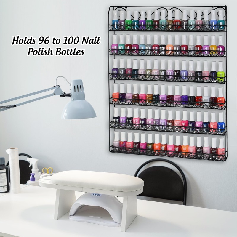 - Sleek Black Metal Finish – Modern Nail Polish Rack: Upgrade your space with this elegant 6-tier nail polish rack, crafted with a sleek black metal finish. Its minimalist, professional design adds a clean, stylish touch to your vanity, bathroom, salon, or spa.