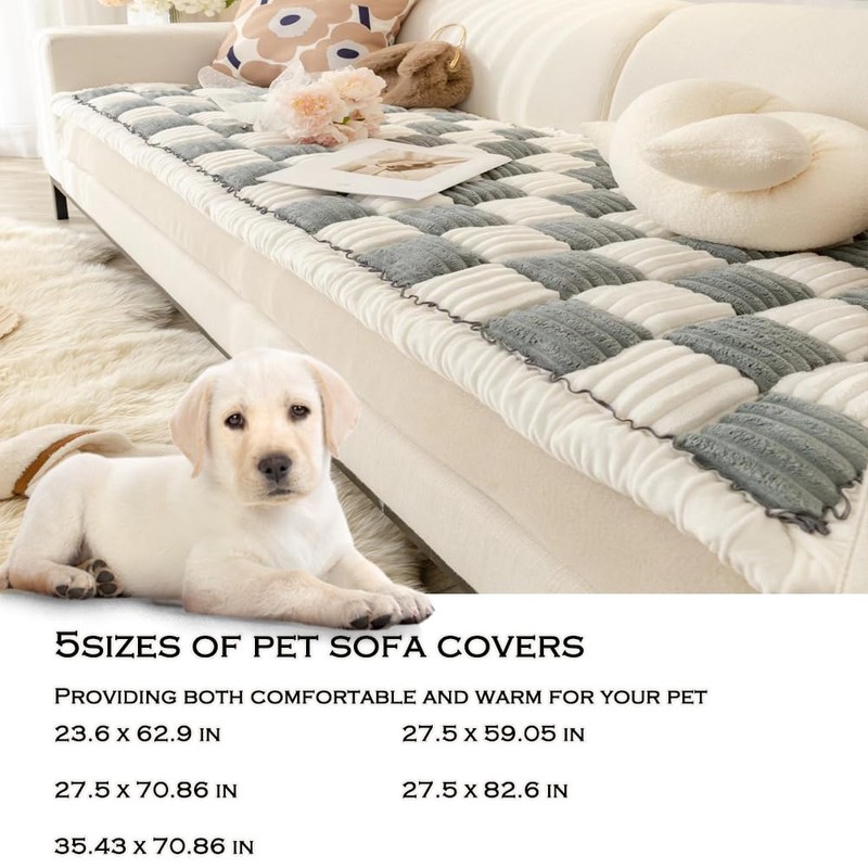- PET COUCH COVERis made of modern plush fabric, every grid is fluffy and full, skin friendly and soft,so that your pet will feel comfortable and warm.The pet couch protector is thickened and scratch-resistant , which help to protect your furniture floor or sofa surface from stains or pet scratches.