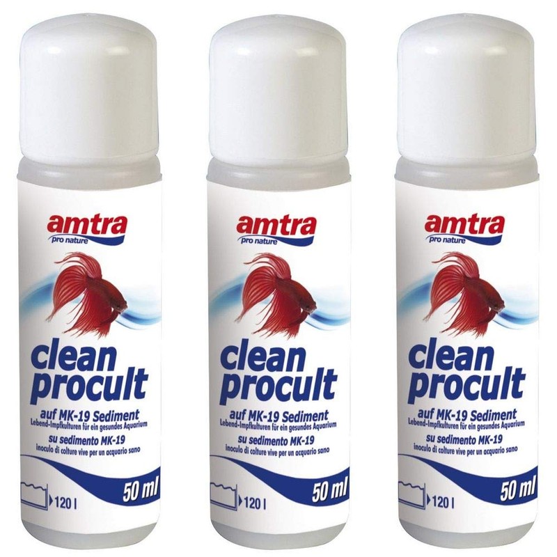 Amtra Clean Procult Set of 3 Live Vaccination Cultures Active Filter Bacteria Healthy Aquarium Algae Water Fish Basic Cleaning 3 x 50 ml