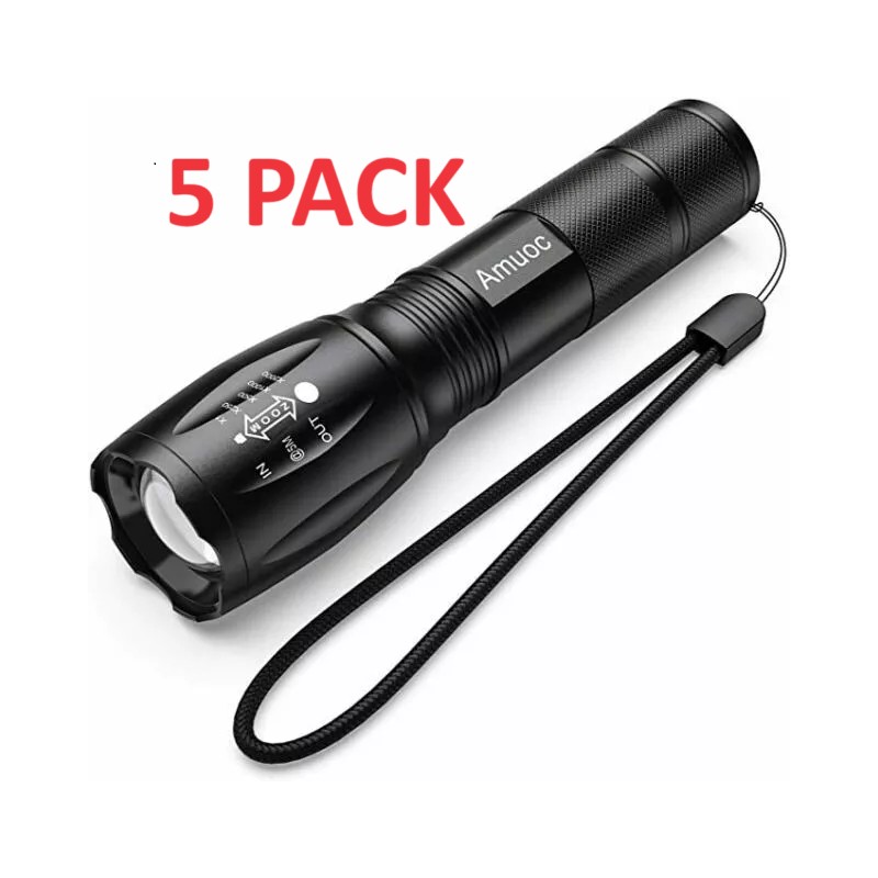 AMUOC (5 PACK) AMUOC HANDHELD FLASHLIGHTS LED TACTICAL S1000 ZOOMABLE 5 MODES