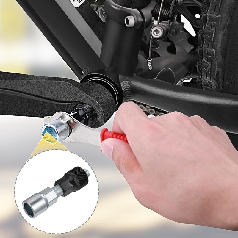 - 【RELIABLE QUALITY】The bicycle crank set is made of iron, which is hard and firm. The handle part is made of non slip plastic, which is safe and reliable to use. Sturdy anti slip handle can help you save time and effort when repairing your bike crank.