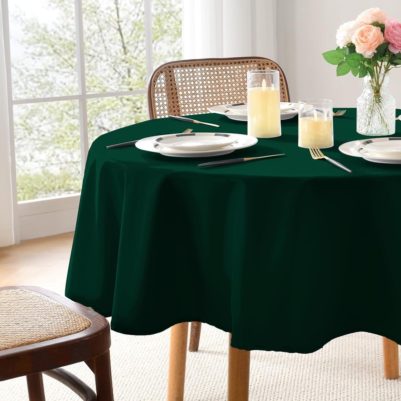 Amussent Christmas Round Tablecloth Water Resistant Table Cloth Wrinkle Free Stain and Spill Proof Polyester Table Cover for Dining/Parties/Buffet - 60 Inch, Green