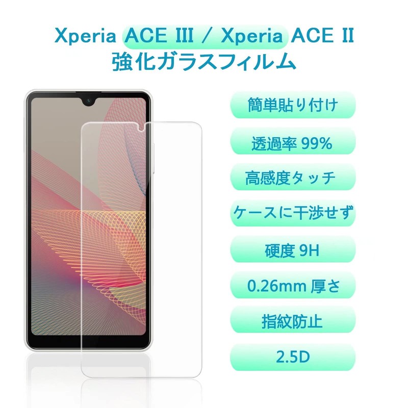 - (Strong Adhesion, High Sensitivity Touch) Xperia AceII / Xperia AceIII glass film uses a special high quality adhesive that can withstand drag and glue within about 100 N after properly adhering AceII glass film. Therefore, you don't have to worry about it falling off after a period of time or decreasing the sensitivity