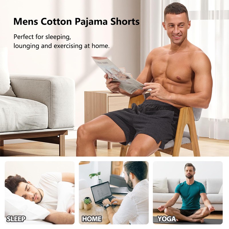 - Design: Mens lounge shorts with elastic waistband and split side design, provides a snug and comfortable fit, allows for freedom of movement. Mens pajama shorts with two side pockets, adding functionality to your sleepwear