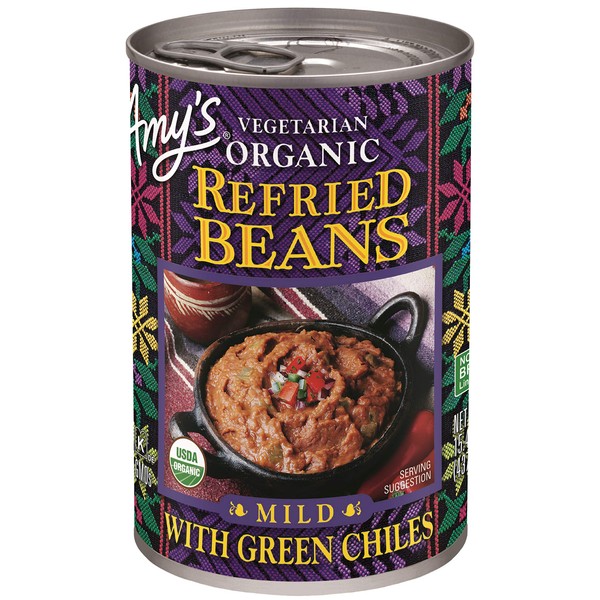 Amy's Vegetarian Organic Refried Beans, Mild with Green Chiles, 15.4 Ounce