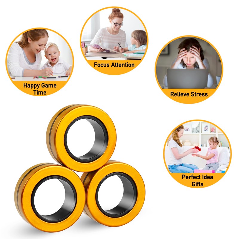 Stress-relieving, 3-5 minute average rotation is perfect for fidgeting hands, and these stress-resistant magnetic rings will calm you down immediately.