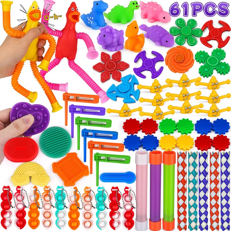 AmyBenton Fidget Toys Party Bag Fillers for Kid 61 pcs, Kids Fidget Toy Pack for Party Bag, Goodies Treats, Classroom Treat/Reward Box, Autism Sensory Toy Gift for Boys and Girls