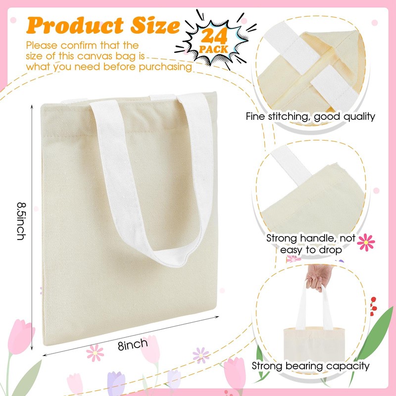 - Sufficient for Needs: you will receive 24 pieces of mini canvas tote bags in natural color with white handle, offering sufficient quantity for daily and party use as well as craft demands, and you can also share them with other people