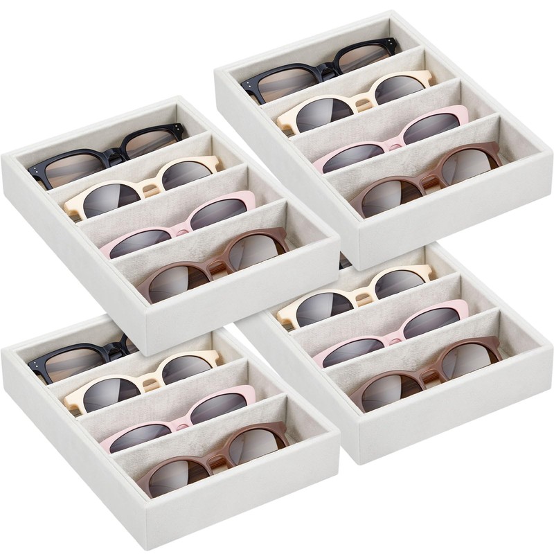 Amylove 4 Pcs Beige Sunglass Organizer Trays 4 Grids Velvet Glasses Holder Jewelry Display Organizer Eyeglasses Storage Box Drawer