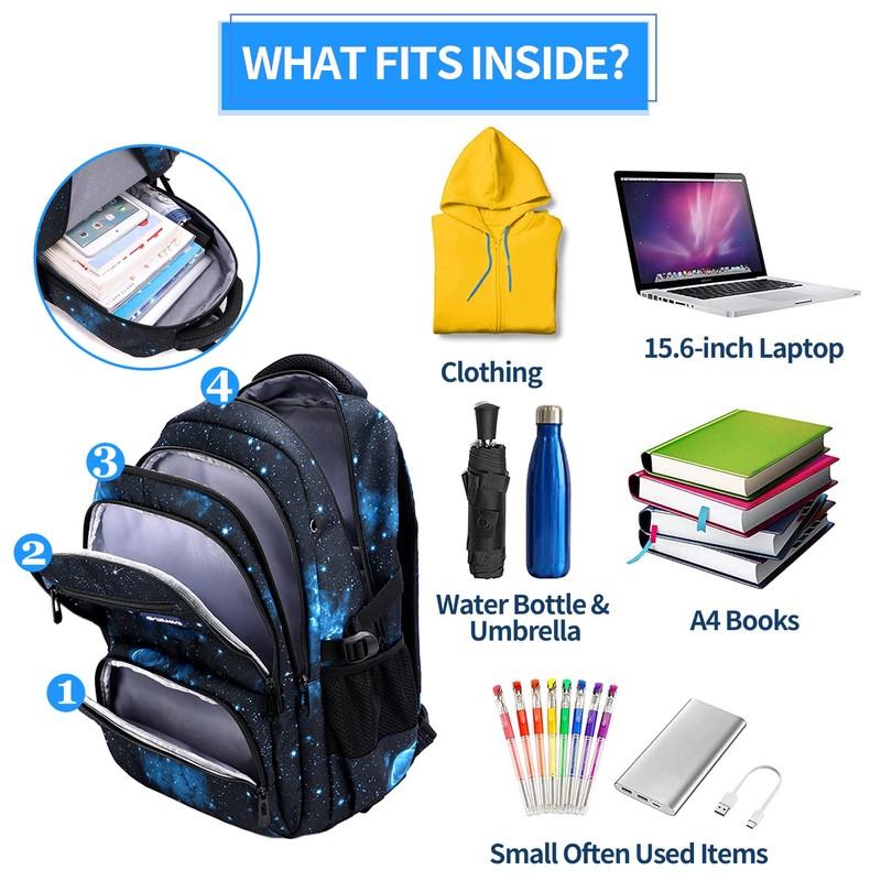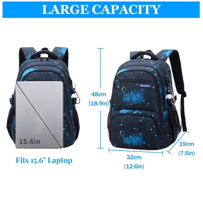 - Fashionable and large capacity: 32 x 19 x 48 cm / 12.6 x 7.5 x 18.9 inches. The large school bag is fashionable with four compartments. It can easily hold a 15.6 inch laptop, A4 folder or items such as books, notebooks, water bottles, etc.