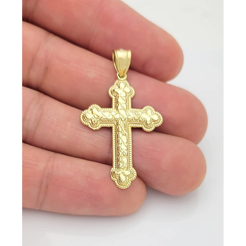 - Diamond Cut Nugget Design Gold Cross For Gold Necklace