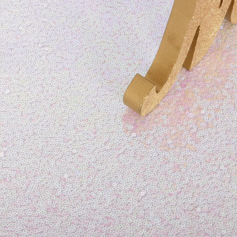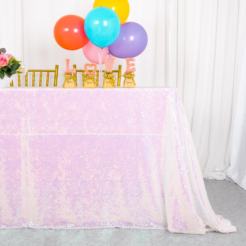 - Dazzling Sequin Tablecloth: 1pc 60x102-Inch iridescent white sequin tablecloth, perfect as a shimmering overlay for rectangular tables.