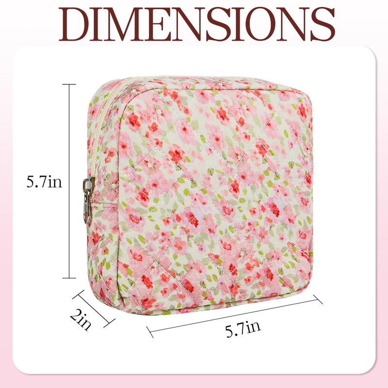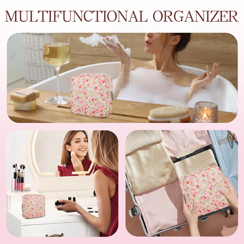 AMZMA Small Floral Quilted Makeup Bag, Coquette Aesthetic Travel Toiletry Organizer for Women, Lightweight Cotton Cosmetic Pouch