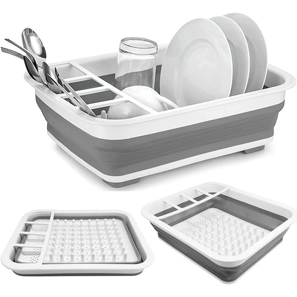 - Collapsible Design The portable storage organizer for dish drainer can be folded into a smaller volume, you can fold it up when you don't use it, then you have more space to place other items. Motorhome, BBQ