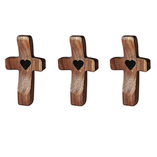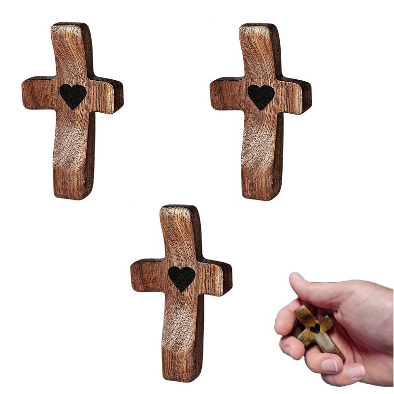 AMZNEVO 3 Pack Wooden Pocket Prayer Crosses, Handheld Walnut Fidget Cross for Stress Relief and Anxiety, Christian Gifts for Men and Women, Comfort Religious Wooden Cross