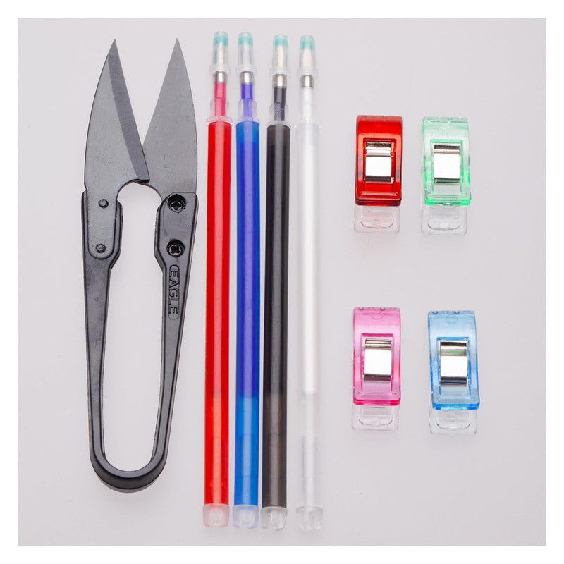 - O(∩_∩)O Extra Sewing Tools Kit:Premium Plastic Clips-4 Pcs, Heat erasable pens for sewing in 4 color-4 Pcs,Beaditive Sewing Scissor-1 Pcs.