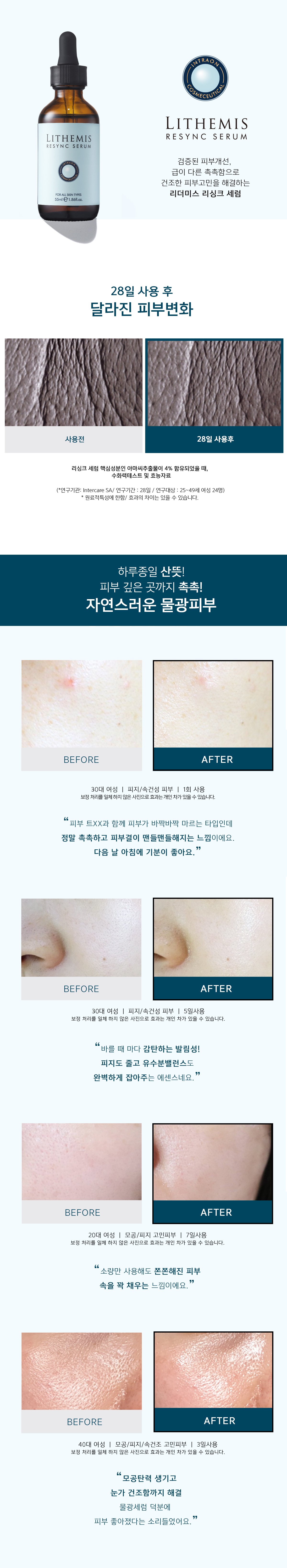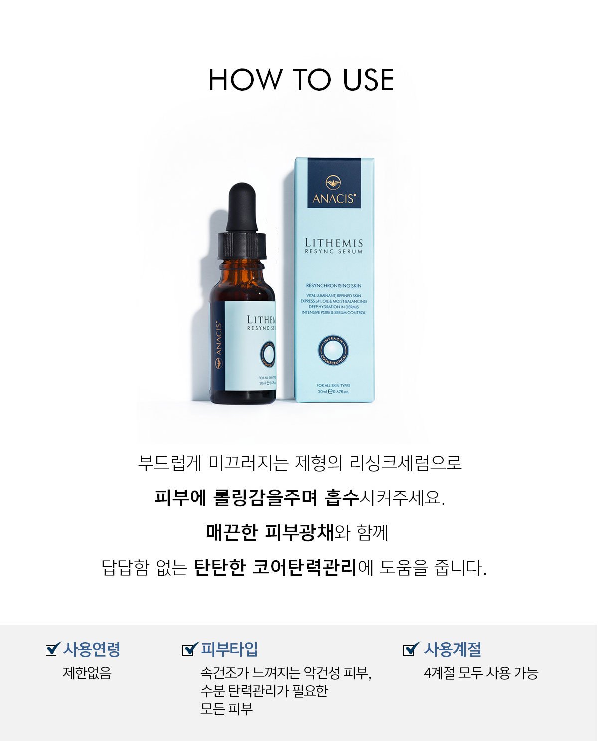 - How to Use: After cleansing and toning, apply the Re-Sync Serum, which has a smooth, gliding texture, and gently massage it in until fully absorbed, ensuring a good rolling sensation. Then, in the order of Re-Sync Serum - Leadermis Soothing Cream - Leadermis Intensive Cream, gently pat to ensure full absorption.