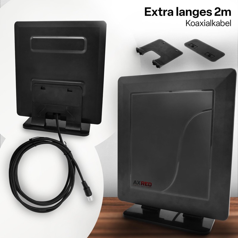 - Horizontal and vertical positionable: the AX 055 antenna is very practical, as you can place the flat antenna in horizontal and vertical position to save space. You can easily adjust the antenna to achieve the best reception without worrying about the durability of the positioning. The mount (antenna support) guarantees reliable stability, regardless of placement.