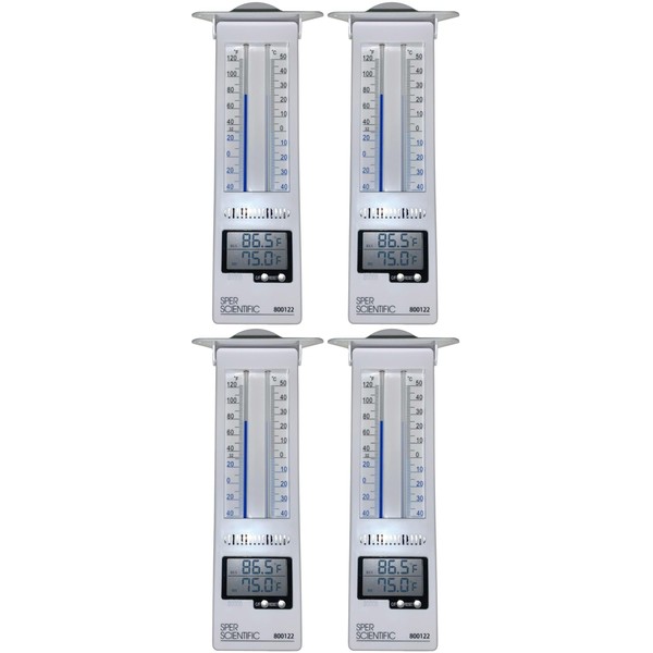 Sper Scientific Analog & Digital Min/Max Thermometer 800122 - Accurate Temperature Tracking, Weather-Resistant Design, Dual Display for Indoor & Outdoor Use, Ideal for Greenhouses, Labs & More - 4 pc