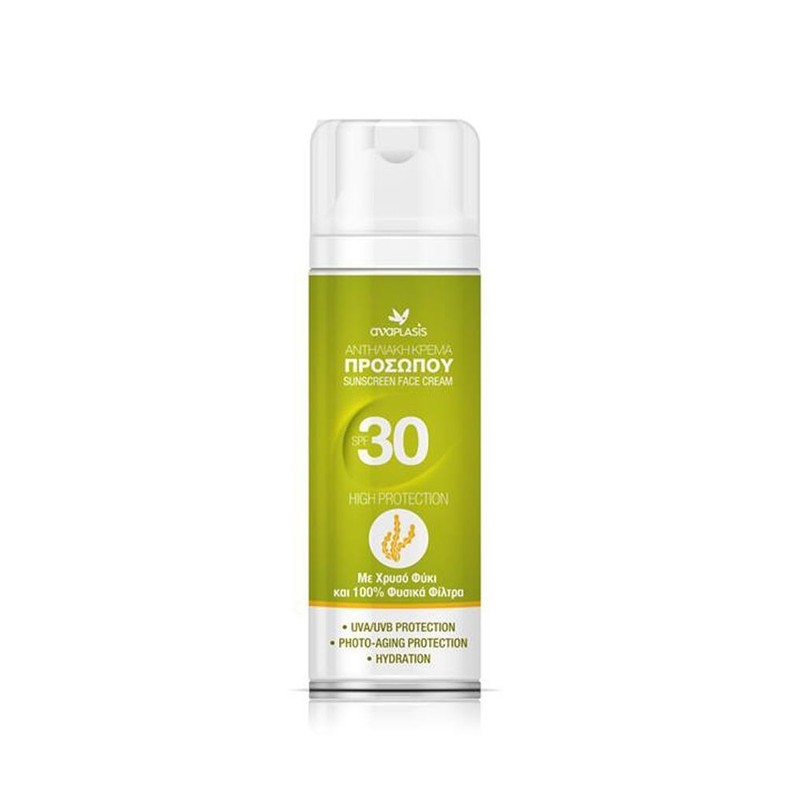 Exposure to the sun can dehydrate the skin and cause premature aging of the epidermis. The Sun SPF30 Sunscreen Face Cream of the company αναPLASIS with GOLD SEAWEED and Natural Filters contains selected active ingredients that effectively protect and maintain the skin hydrated during sun exposure.