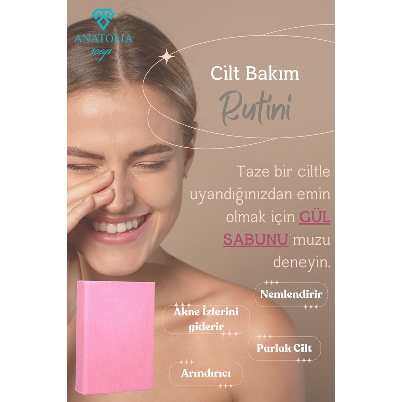 Anatolia Soap 1978 Gül Sabunu, Gül Yaprağı Aromaterapi Cilt Besleyici Bitkisel Nemlendirir hoş kokulu kadınlar için Yüz ve Vücutta kullanılabilir 1 Adet.